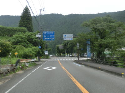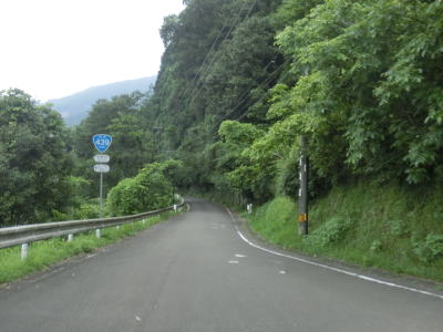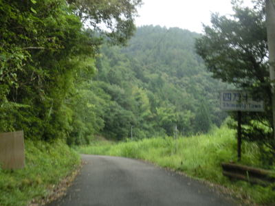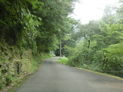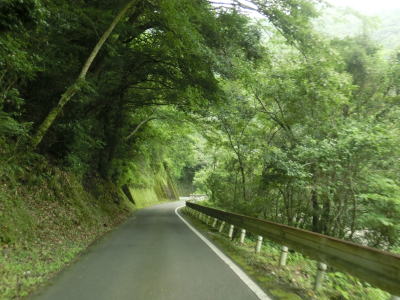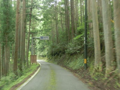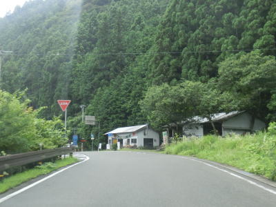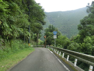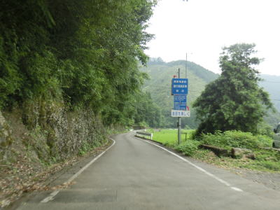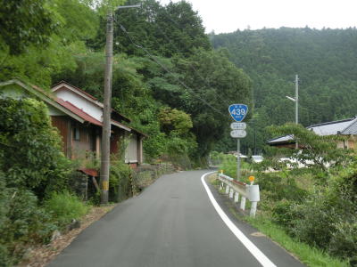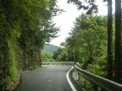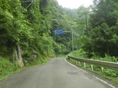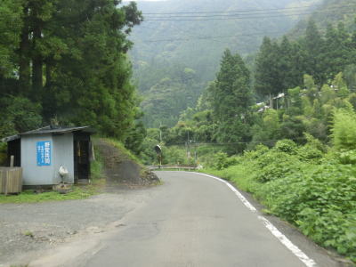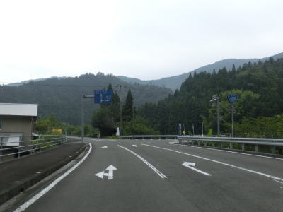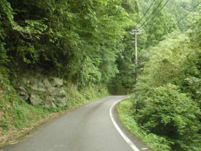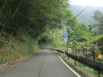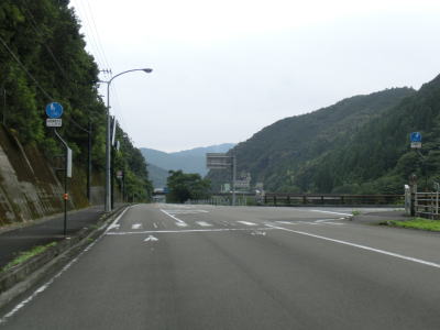 | 北川に沿って存在する小さな集落を結びながら交通量もひと気もない山間部の狭路を走る。鬱蒼とした杉林の日当たりの悪い状態を走っていると町境を通過して檮原町に入る。檮原町に入ってすぐに右ヘアピンカーブを曲がり、北川に沿ってカーブしながら狭路を走る。北川の支流の高野川に架かる橋の手前で檮原東津野林道との交差点を通過する。林道に檮原町役場が案内されているが、この林道はただの山岳林道ではなく緑資源幹線林道という舗装済みの林道である。 | ||