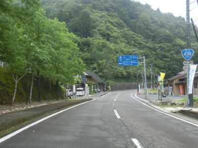 | ダム湖畔を走っているためかガードレールの設置率は高く、転落の可能性はほとんどないだろう。下津井橋の東詰から約7.8kmで津賀ダムの脇を通過する。ダムの天端を車両で通行できるが、6tの重量制限がある。ちなみにダムの手前に公衆トイレがあるが、建てられてさほど時間が経過していないようで大野地バス停のトイレよりもかなりきれいである。 | ||