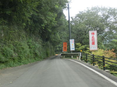 | 狭路を走っていると急に道幅が広くなり、快走路区間が始まるかと思ってしまうかもしれないが、すぐに元の狭さに戻ってしまう。おそらく法面崩落の復旧の際についでに拡幅されたのだと推測される。木屋ヶ内集落も1.0車線狭路のままで通り抜け、その後も同じ道幅が続いている。 | ||