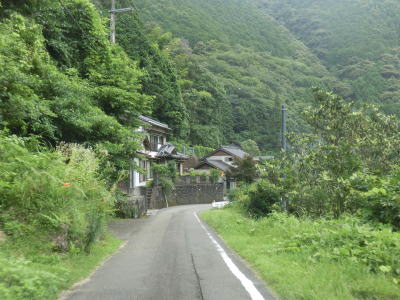 | 高知r26以北の狭路区間と同じような道路状況が続いている。舗装状況は比較的良好で交通量が極めて少ない。離合できない1.0車線幅区間もあるが、その割合はさほど多くない。影地集落は家屋が密集しているという訳ではないが、拡幅されておらず1.0車線の軒先酷道の雰囲気がある。 | ||