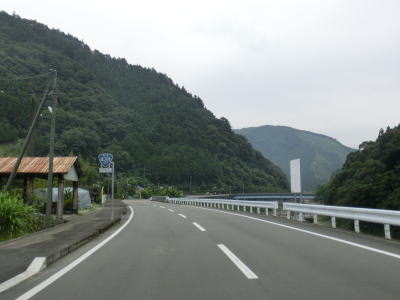 | 惰行している北側に沿って走っていると大野地バス停(?)を通過する。バスの待合所と思われる建物は男性用小便器が外に付けられているという斬新な造りをしている。大便器は小便器に隣り合うように建物内に設置されていると思われるが、中を見る勇気はなかった。 バス停のすぐ先に町道が交差しているが、町道の先に大野地集落がある。この大野地集落からはしばらく集落が途切れてしまう。そのせいという訳ではないだろうが、ガードレールの設置率は低くなったように感じられる。 |