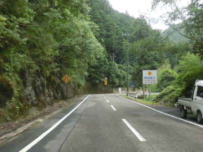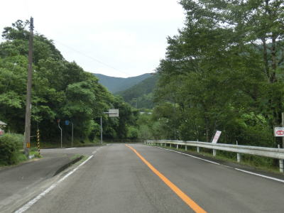 | カーブが多く見通しが悪い1.0車線狭路をひたすら走る。交通量は少ないが2台の対向車に遭遇した。1台目は離合スペースがあったため難なくすれ違えたが、2台目は100m程の後退を強いられた。万が一大型車が進入して対向車が現れたらどうしようもない状態になる事は必至である。 | ||