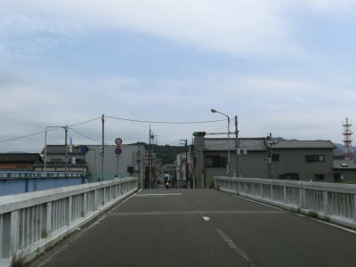 | 高知r333交差点を過ぎてすぐにセンターラインがなくなり1.8車線幅と狭くなり、短い勾配を上って後川橋を渡る。橋上は消えかけたセンターラインの2車線道路で、歩道は下流側に隣接して別の橋が架けられている。 後川橋の南詰はR441交差点となっており、それを過ぎると勾配を下って四万十市の市街地に入る。案内標識やソトバに現れていないものの道路時刻表ではR439との交差点から2km程伸びている事から終点はこの交差点ではなくR439と同じ右山交差点と思われる。四万十市街地は家屋が密集しているうえに歩道がないため山岳酷道とは別の意味で走りにくさを感じる。 |