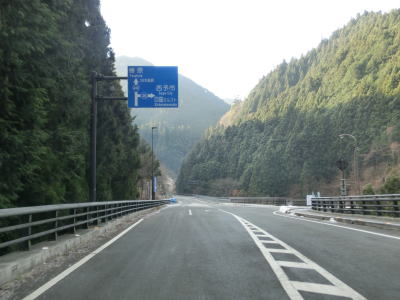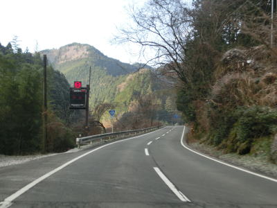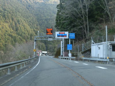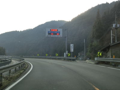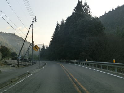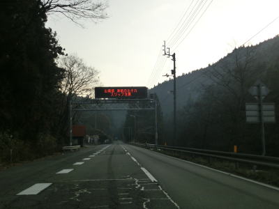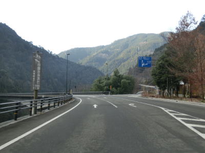 | 愛媛r328交差点の直後に大成橋を渡り、次いで大成トンネルをくぐる。新赤子橋を渡った北詰で旧道との交差点を通過し、黒川の左岸を走る。川沿いとは言え川面との高低差があるため流れている水は見えない。電光掲示板に通行止が表示されていたが、これはR440ではなく愛媛r383の情報である。r383は四国カルスト公園縦断線と言ってその名の通り四国カルストの尾根筋を走る県道である。県境を何ヶ所か通っているため、高知r383にも指定されている。 | ||