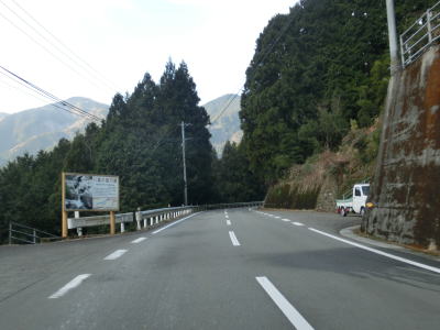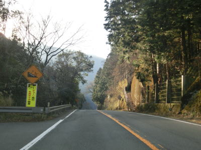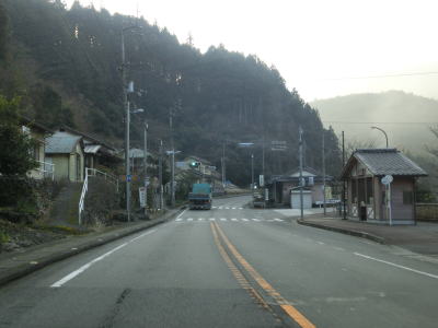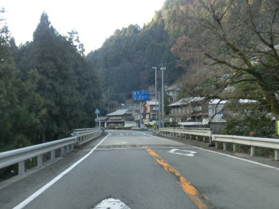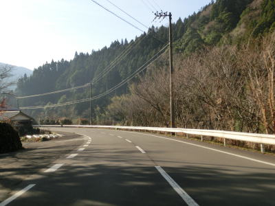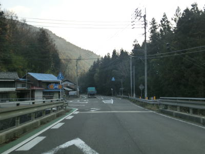 | 郷角集落にも短いセンターラインなし箇所があるが、急カーブになっているので通行の際に注意を要する。集落の名称の郷角は“ごうかく”と読み、ごうかく駅(バス停)がある。その後もカーブの多い2車線道路が続いており、小村集落を通り過ぎた所でも道幅が狭くなる。この狭路区間は離合できない道幅まで狭くなる。距離は短いものの地芳トンネルが開通した後ではR440でも最も狭い区間である。 | ||