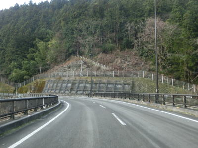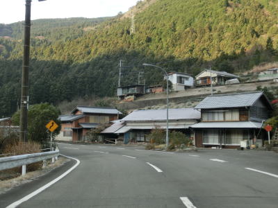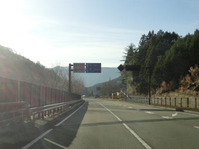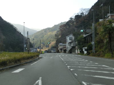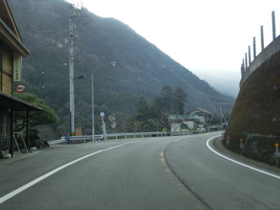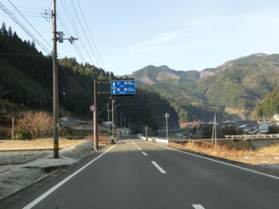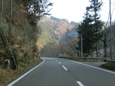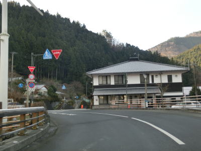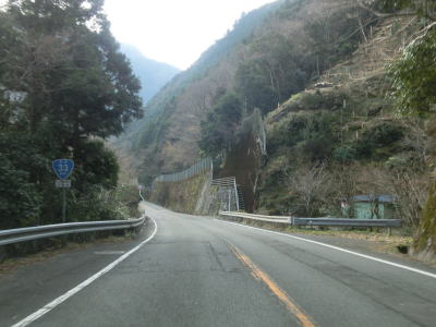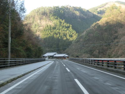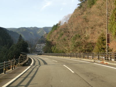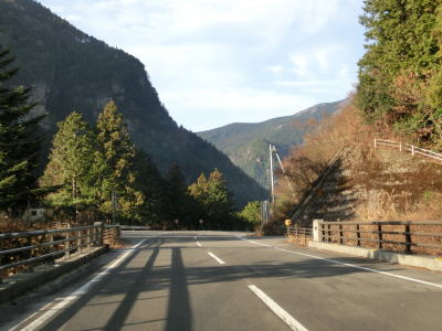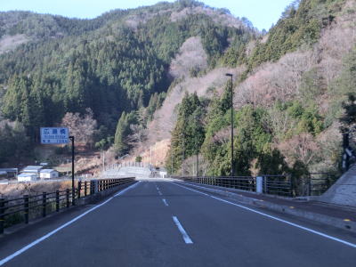 | 集落のない谷筋の2車線道路を走っていると平井橋という1tの重量制限のある橋の西詰を通過する。対岸にある平井集落のための橋と思われるが、集落自体が既に廃されている可能性がある。平井橋を過ぎてからは小さな集落を通過しながら面河川の右岸を走る。 | ||