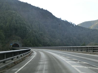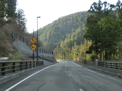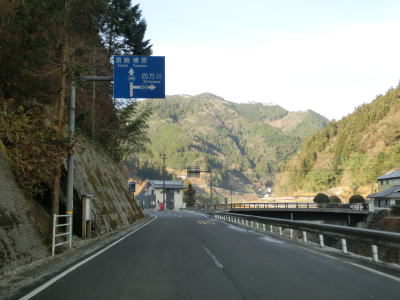 | 檮原川の左岸を走っていると郷良橋を渡る。川自体が蛇行しているためそれに沿っているR440も蛇行しているが、2車線道路なので特に走りにくいという事もない。後別当集落を通過してやや急な右カーブを曲がると芹川トンネルをくぐる。その後も檮原川の左岸を快走する。 | ||