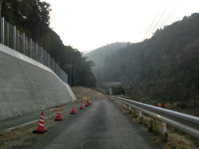 | バイパス工事現場と思われる場所を通り過ぎるとしばらく2車線道路が続いている。長い上り勾配と急なカーブが連続しているが、交通量が少ない事を考えるとさほど走りにくい道路状況ではない。 | ||