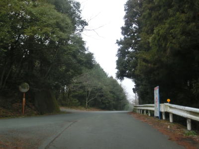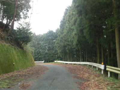 | 道幅が広くなるものの両側に堆積した落ち葉のせいで有効な幅は1.0車線分しかない。その後道幅が狭くなって以降はカーブが多くなる。林道(?)が交差している左ヘアピンカーブを曲がり、さらに狭路を走る。 | ||