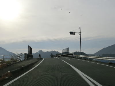 | 平坦な状態を少し走った後に旧道との交差点を道なりに進み、JR予土線を桃源跨線橋でオーバーパスする。線路を上を過ぎると左にカーブし下り勾配の夢の国大橋で広見川を渡った後に右カーブを通過する。 | ||