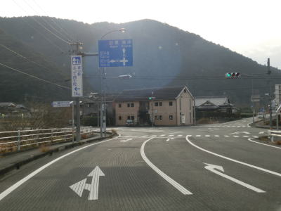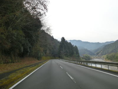 | 愛媛r8交差点からも2車線道路が続いており、山の間を走った後に山裾を走る。北側にはJR予土線が並走している。広見川の右岸を少し走った後に左の急カーブを曲がる。カーブには現道が交差しているが、案内標識等は設置されておらず道なりに走れば自然とバイパスを走らされる。R381走行の際に現道を走ったため、今回は吉野東バイパスを走る。 | ||