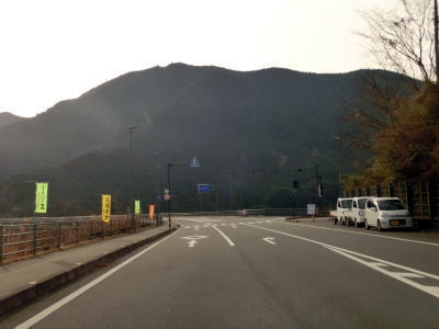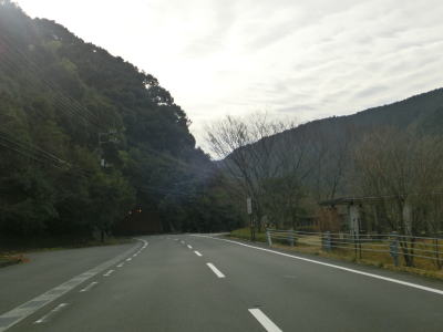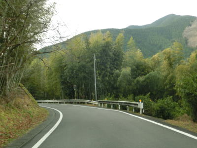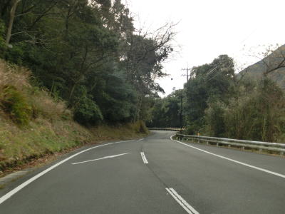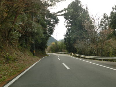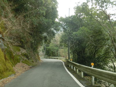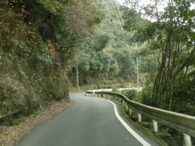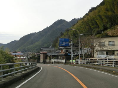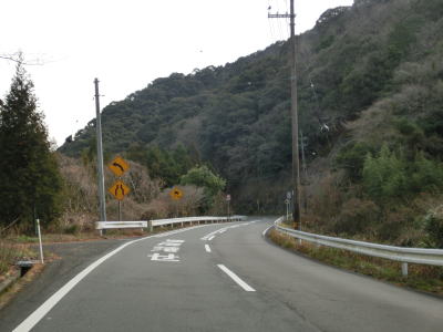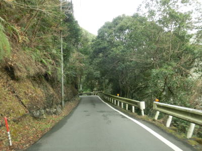 | 口屋内橋からはセンターライン付きの2車線道路になるが、300m弱進んだ所で狭くなる。とは言っても1.5〜1.8車線程度の道幅は確保されているため、乗用車同士であればさほど離合に困る事もないだろう。上久保川集落の手前からセンターラインが復活して2車線道路となる。 | ||