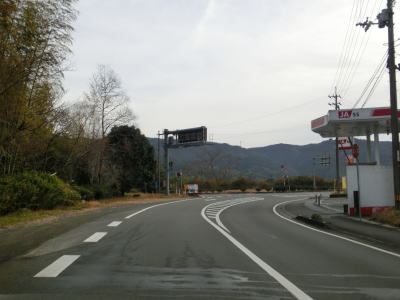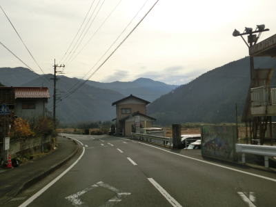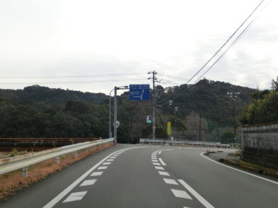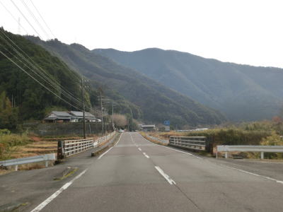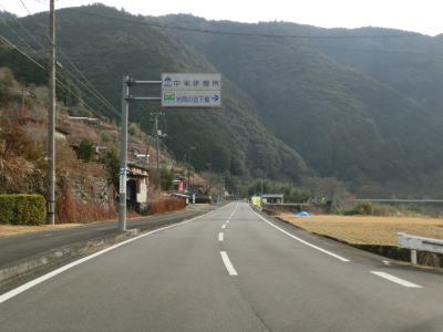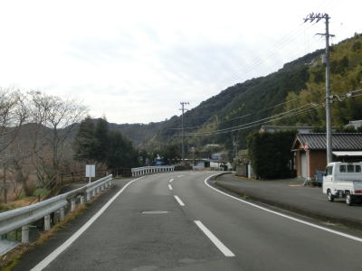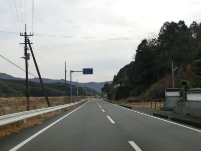 | 交通量の少ない2車線道路を走っていると利岡小学校と後川中学校の間で右の直角カーブを曲がる。以降も概ね岩田川沿った山裾の2車線快走路を走る。四万十市の市街地に近付いているがローカルな雰囲気が濃い。 | ||