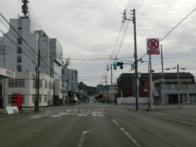 | R439との交差点の直後に短い勾配を下って四万十市の市街地に入る。家屋が密集しているうえに歩道がないため走りにくさを感じる。ほぼ真南に向かって伸びている直線道路を走っていると高知r346交差点に突き当たる。交差点の北西に四万十市の市役所があり、四万十市(旧中村市)の中心部と言える場所である。 | ||