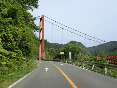 | 平橋を渡って矢部川の左岸に戻るが、橋の前後はやや急なS字状のカーブとなっている。その後しばらくは集落を通り抜ける2車線道路を走って木屋橋を渡る。木屋橋の前後もS字状の急カーブである。 | ||