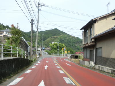 | 235.現道との入道橋東交差点を右折 | 236.入道橋 | 237.歩道のない2車線道路 |