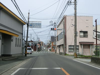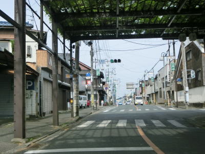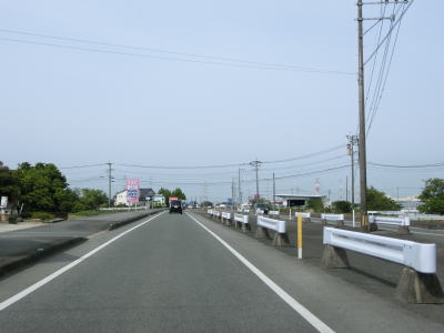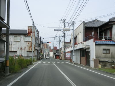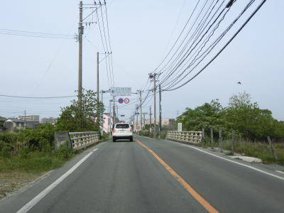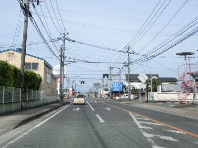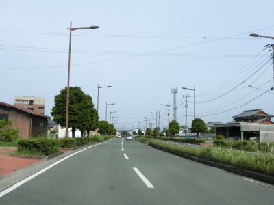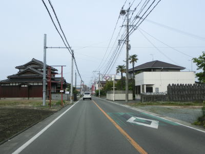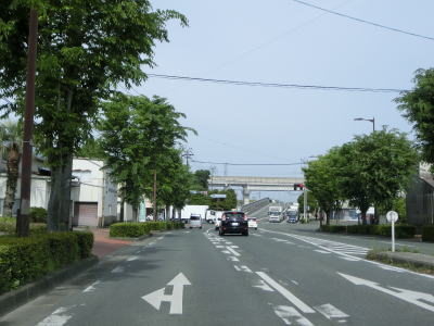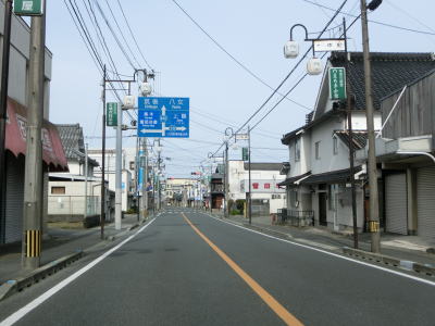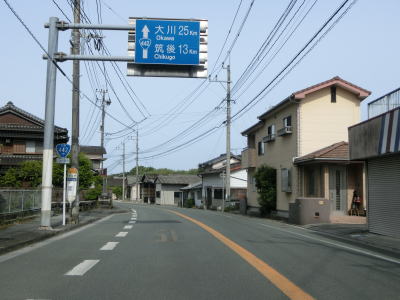| 大川市役所の北で宮内交差点と大正橋交差点を通過する。福岡r710が交差しているのだが、ウオッちずでは宮内交差点に、現地のソトバでは大正橋交差点で交差している事になっている。歩道がなく家屋が密集していて狭苦しい2車線道路を走っていると左の直角カーブを曲がる。 | ||