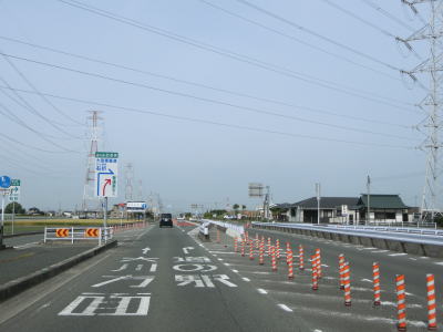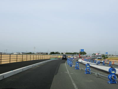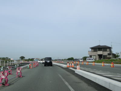 | 市道との久喜交差点を過ぎると車線が減少するが、多車線化工事が行われている最中だったため走行できる車線が切り替わる場所もあった。このレポートが公開される頃には工事が完了しているかもしれない。 | ||