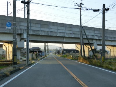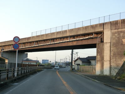 | 福岡r23矢加部交差点を通過すると矢ヶ部高架橋を通過する。鉄道の線路が接近してくるためそれを越えるのかと思いきや右にカーブして並走して平面道路に戻る。1987年までは前述の国鉄佐賀線が下を通っていた。 | ||