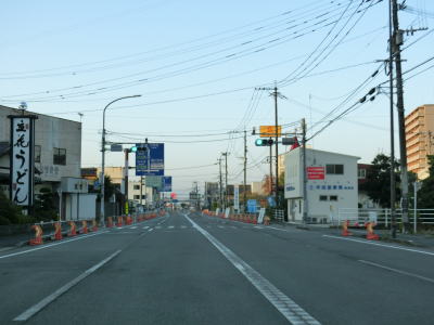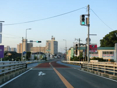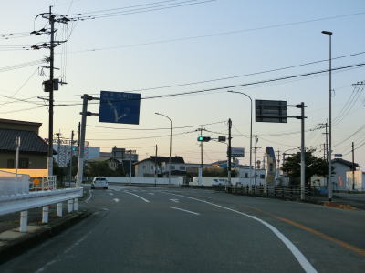 | 43.福岡r94交差点以南はまた狭苦しくなる | 44.射的橋 | 45.R443山川バイパスとの物見塚交差点を左折 |