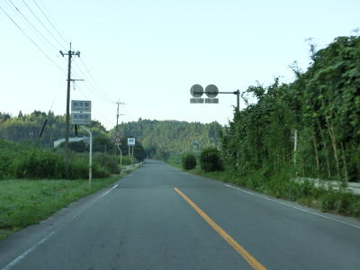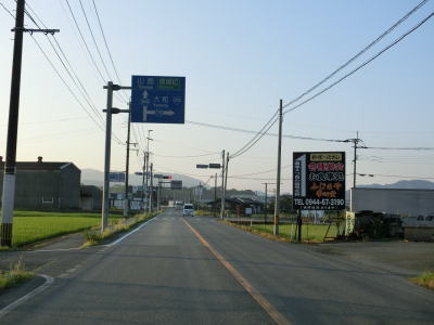 | 左カーブを曲がっていると和水町に入り、右カーブの先で熊本r194大田黒交差点を通過する。交差点名やウォっちずでの地名表記は「大田黒」だが、おにぎり下の補助標識は「太田黒」となっている。おそらく後者が誤りと思われる。三加和温泉を通り過ぎて熊本r6交差点を通過する。緩やかなアップダウンとカーブを繰り返す2車線道路を走っていると山鹿市に入る。 | ||