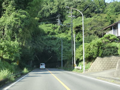 | R445辺田見交差点からは対面2車線道路になる。御船川に架かる妙見橋を渡ると緩やかな上り勾配が始まり妙見坂隧道をくぐってから下り勾配になる。緩やかな勾配を下っていると甲佐町に入る。妙見坂隧道や妙見坂が町境の方がしっくりくるがどちらも町境ではない。 | ||