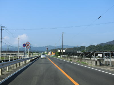 | 谷筋を脱して視界が開けると同時に差野集落を通り抜ける。畑中橋という跨道橋を通るが、その下の市道は熊本r52の未供用区間を繋いでいる。氷川の左岸の平坦地を快走していると熊本r155交差点を通過する。 | ||