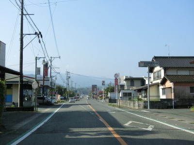 | 有安交差点を過ぎて堤防から下りた後に甲佐町の中心部に差し掛かる。御船町とは異なり多車線化はされておらず歩道も完全には整備されていない。町役場の前を通って中心部の南部で熊本r102・r220交差点を通過すると沿線の建物が少なくなる。 | ||