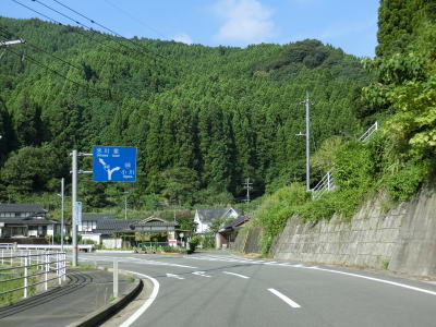 | 払川集落を過ぎると釈迦院川から離れ、勾配がややきつくなる。長い勾配を上っているとやや急な右カーブを曲がって八代市に入る。平成の大合併以前は泉村だった場所である。 | ||