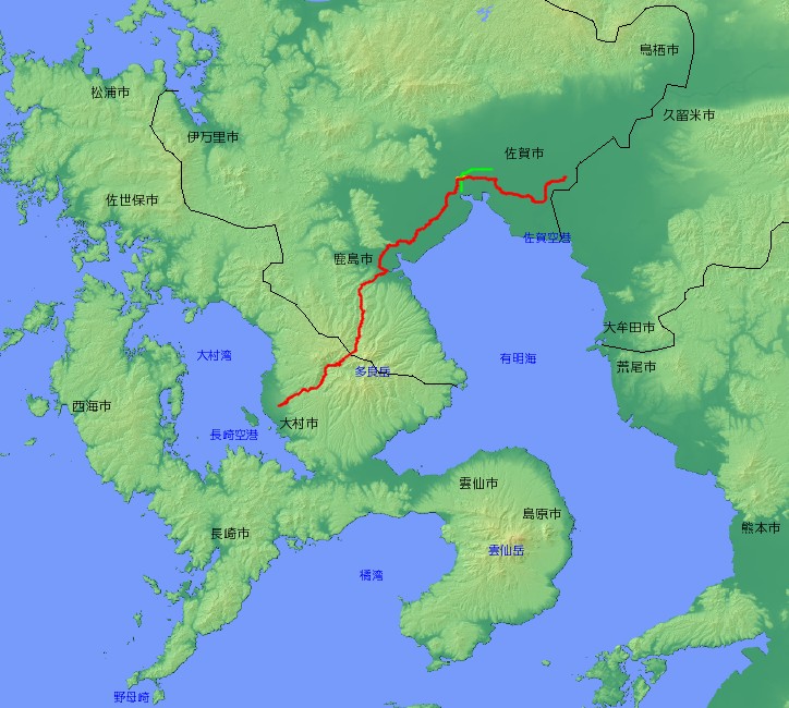 | 主な経由地 | 長崎県大村市〜 〜佐賀県鹿島市〜佐賀市 |