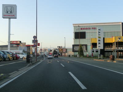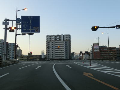 | 7.八王子跨線橋 | 8.4車線区間は浜線バイパスと呼ばれる | 9.R57・R266田井島交差点を直進 |