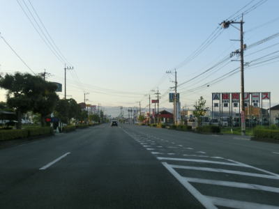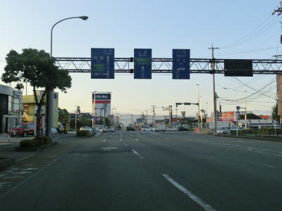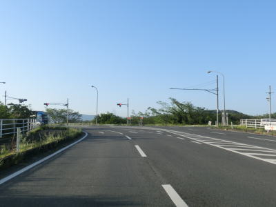 | 田井島交差点からも4車線道路が続いているが、交通量は若干ではあるが減っているように思える。熊本r236重富交差点の手前で熊本市東区に入る。約1.4km走ると熊本r103・r104との交差点を通過して加勢川に架かる中の瀬橋を渡ると嘉島町に入る。嘉島町に入ると中央分離帯が現れて片側2車線道路になる。 | ||