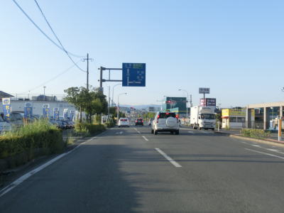 | 九品寺6交差点からも4車線道路が続いており、JR豊肥本線を八王子跨線橋で越えて南の方角に進む。熊本市中央区から南区に入り南東の方角に走っているとR57・R266田井島交差点を通過する。案内標識にはご丁寧にR445のおにぎりも表記されており、直進である事が容易に判断できる。 | ||