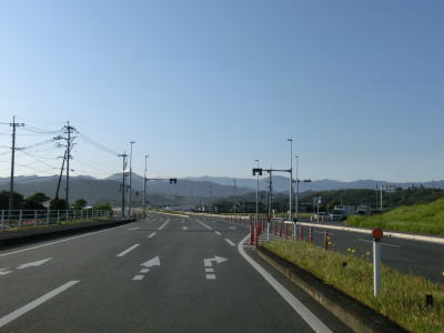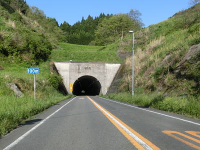 | 緩やかな勾配を上っていると万坂隧道をくぐって美里町に入る。トンネルの手前に「100m」という標識が見えるが、これは標高を示すものではなく車間距離を確認するために設置されたものである。万坂隧道からさほど走らないうちに次の北野隧道を通過する。 | ||