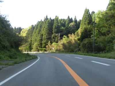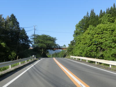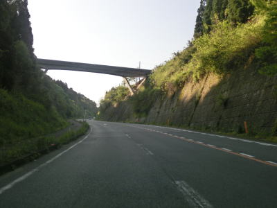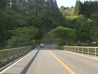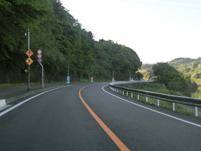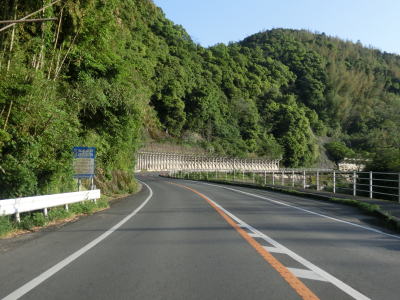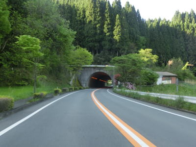 | 緑川ダムが造るダム湖の北を緩やかにアップダウンする2車線道路を西進する。ダム湖の近くを走っているとはいえ湖畔を走っている訳ではない。緑川ダムの近くで馬入隧道と船津隧道を相次いでくぐる。 | ||