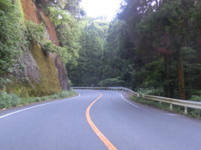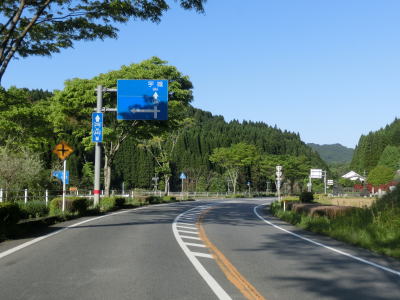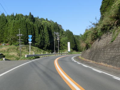 | 熊本r219交差点を通過してすつに異常気象時通行止区間の始点を示す標識が立てられている。それによると降雨量が200mm以上の場合に通行止になるようだが、時間雨量は文字が消えたのか最初から書かれたいなかったのかわからないが数値が記入されていない。異常気象時通行止記載区間に入ってからも非常に緩やかな上り勾配の2車線道路が続いている。急カーブが多いものの交通量が少ないため自分のペースで走る事ができる。 | ||