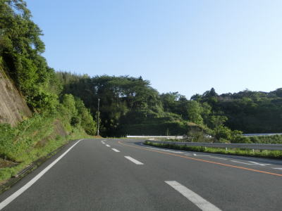 | 北野隧道を出てから少し走ると反対側の東向き車線に登坂車線が現れる。その登坂車線がなくなってからも緩やかな下り勾配が続いている。等高線に沿っているためいくつか急なカーブもあるが、交通量が少ないため自分のペースで走る事ができる。熊本r220交差点付近からは集落を通っている。 | ||