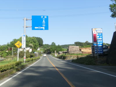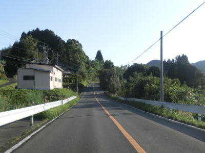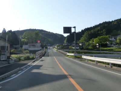 | 緩やかな勾配を下っていると御船川に架かる金内橋を渡るが、その橋がR445が渡る御船川の最も東に位置する橋である。金内橋付近からは概ね南東の方角に進んでいる。断続的に現れる集落を繋ぐ快走路で、交通量が少ないためハイペースで流れている。 | ||