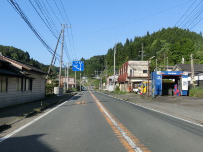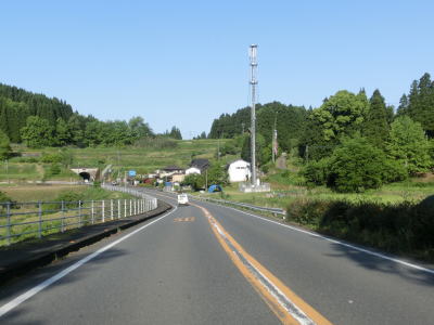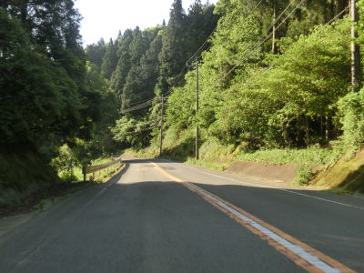 | 御船川の流域を離れると緩やかなカーブが多くなり、元々緩やかだった勾配と相まって走りやすくなる。断続的にいくつかの集落を繋ぎながら北東の方角に走る。大きく右にカーブして七滝トンネルをくぐる。旧道は鎖か何かで繋がれたA型バリケードが置かれており通行できない。その後も緩やかな上り勾配のカーブの多い2車線道路を走っていると山都町に入る。 | ||