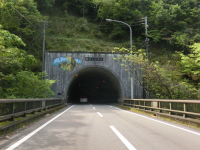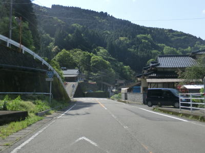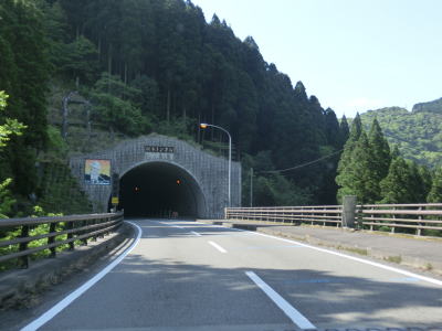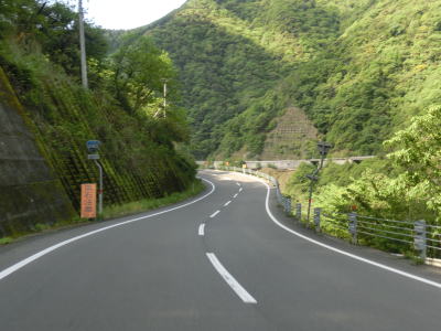 | 熊本r25交差点の直後に道の駅「子守唄の里五木」を通過する。山中を走るR445の美里町〜相良村間の区間においては貴重な補給&休憩ポイントである。道の駅付近は村の中心部とあって交通量が多い。と言っても数台の車とすれ違った程度である。五木村の中心部の南で板木トンネルをくぐり、緩やかなS字カーブを曲がり、現道との交差点を尽かしてから下寺トンネルに入る。右折して現道に進めば川辺川の手前でT字路に突き当たるが、右折が村の中心部を通る現道で国道に指定されているが、左折の道路は指定を外れており旧道となっている。 | ||
