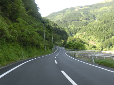 | 内部が左にカーブしている瀬目トンネルを出て少し走ると相良村に入る。その直後に藤田谷川を渡るが、この川は村境ではない。相良村に入ってからも緩やかなカーブとアップダウンの2車線快走路が続いている。 | ||