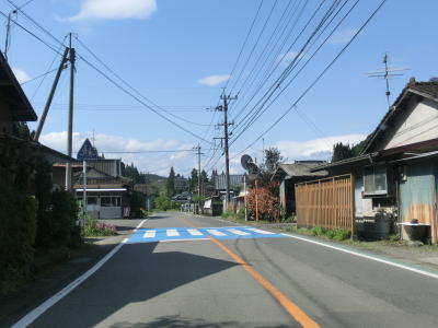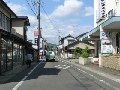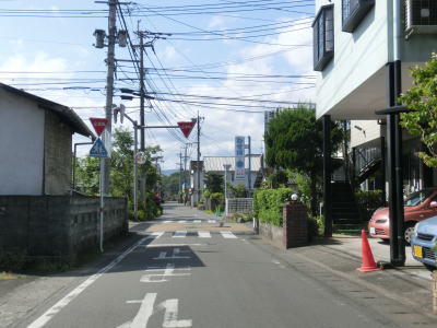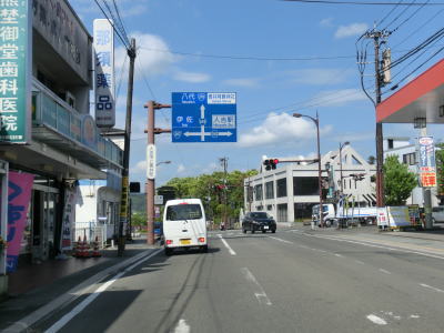 | 熊本r33交差点を右折した直後にJR肥薩線の踏切を通過し、家屋が密集している中を2車線道路で走り抜ける。市街地と言える場所のため2車線道路と言えど狭苦しさを感じる。r33交差点から約700m進み、人吉七日町郵便局前で左、右とシケイン状に曲がる。案内標識は設置されていないが道なりに進むだけなのでルートミスする可能性は低いだろう。シケインのすぐ先で熊本r54五日町交差点を通過する。 | ||