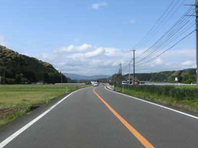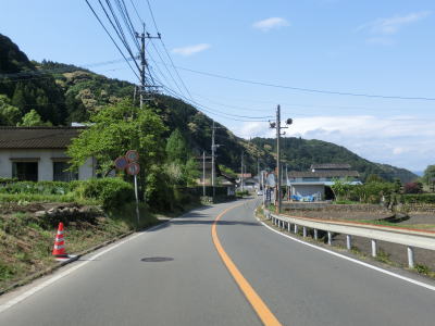 | 20t超車が通行できるとは言え特に道路状況が変わる訳ではなく、2車線道路が続いている。カーブやアップダウンはあるものの概ね快走路と言える道路状況である。熊本r324との交差点を通過してすぐに相良村役場の南を通過する。村役場通過後に右と左の急カーブを曲がり、消防署の相良分遣所の前で山江村に入る。 | ||