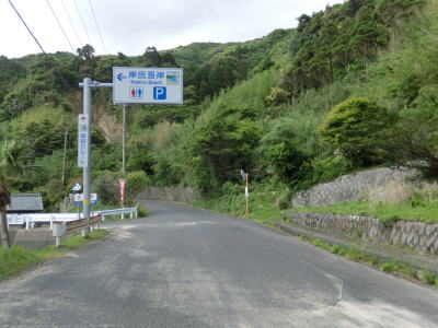 | 鹿児島r542交差点の直後はセンターラインがないものの2.0車線と乗用車の通行には支障のない道幅が確保されている。すぐにセンターライン付きの2車線道路となって集落内を通り抜ける。浜渡橋を渡り岸良海岸のメインの出入口との交差点を通過すると家屋が途切れ、勾配の平坦な状態から上り勾配となる。 | ||