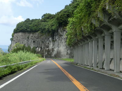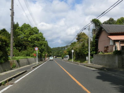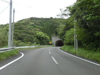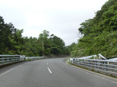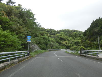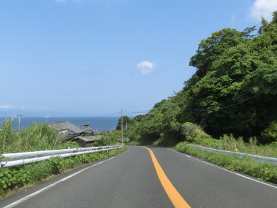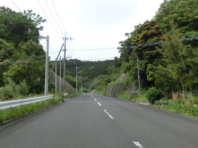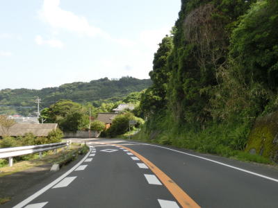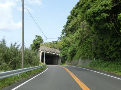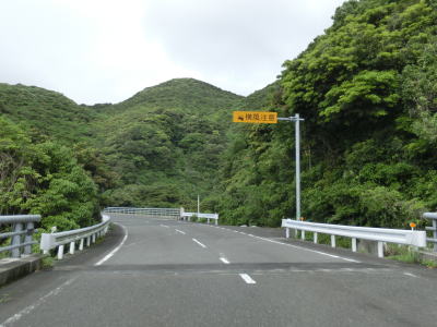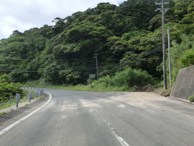 | 歩道はないものの緩やかな勾配の2車線道路で海沿いを走る。写真には海が写っていないためシーサイドルート感に欠けるが、視線を左に向ければ大海原が広がっている。標高は70〜100m程度の位置を走っているため越波を心配する必要はない。船木集落以降は橋梁が多く、その前後では旧道と交差している。意外にも閉鎖されていない旧道が多いが、管理の手が行き届いていないようなので通行はお勧めしない。 | ||