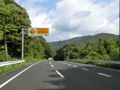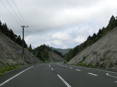 | 194.内陸に進んでも道路状況に変化なし | 195.五郎ヶ元トンネル | 196.旧道との交差点から登坂車線が現れる |