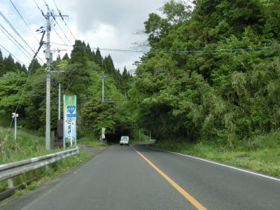 | 内ノ牧橋を渡り終えると内ノ牧集落を通過する。緩やかなアップダウンとカーブを繰り返す交通量の少ない2車線道路を走っていると肝付町岸良の案内標識に表記されていた花瀬公園へ行ける広域農道との交差点を通過し、その後も2車線快走路を走る。緩やかな上り勾配を走っていると新田トンネルを通過する。 | ||