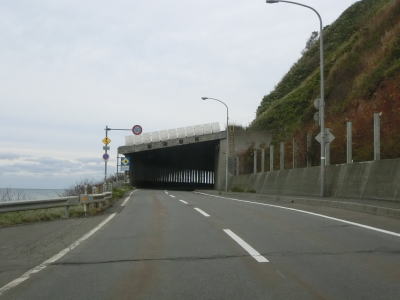 | マッカ岬トンネル、ペリカトンネルと変わった名称のトンネルを通り、その直後に大別刈トンネルをくぐる。この全長1992mの大別刈トンネルがR451(及びR231)の最北のトンネルである。 | ||