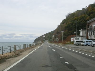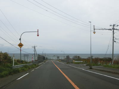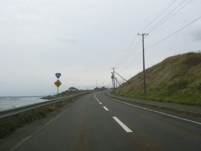 | 海沿いの集落を通り抜けるようにして2車線道路を走る。海面との高低差がなくなると留萌本線との並走を続けながら集落を走り抜ける。廃線になった留萌本線は意外な事に駅の数は多く各集落毎に設けられている感じだが、ローカル路線のローカル駅跡なので駅舎が小さい事もあって意識せずに走っていると駅の存在に気付かない。 | ||