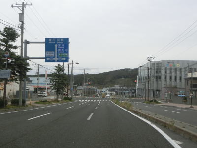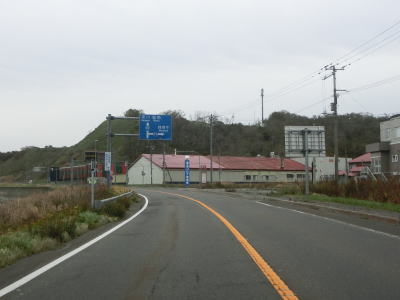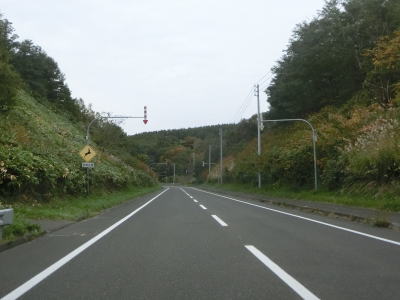 | 旧浜益村役場、現石狩市役所浜益支所のある浜益集落を通過する。かつての村の中心部だが、道幅が狭くなる事もなく走りやすい2車線道路のまま通り抜けられる。浜益集落を出てしばらく海岸線沿いを走るが、郷土資料館の出入口との交差点の先で右に大きくカーブして一旦内陸に進む。その後、群別川を渡って左にカーブすると群別集落の北側を西進する。集落の中を通り抜けているというより北側をバイパスしている感じなので道路状況は良いままである。 | ||